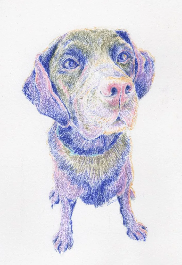 Meanwhile I’m working on a book cover (the sequel to this book!), a custom colourful animal (the gorgeous lab in coloured pencils you see here), and there are illustrations for a book coming up.